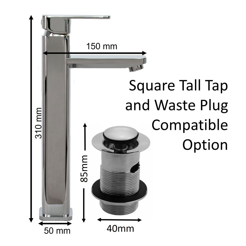 Two Piece Square Quadrato Chrome Tap with Unslotted Waste