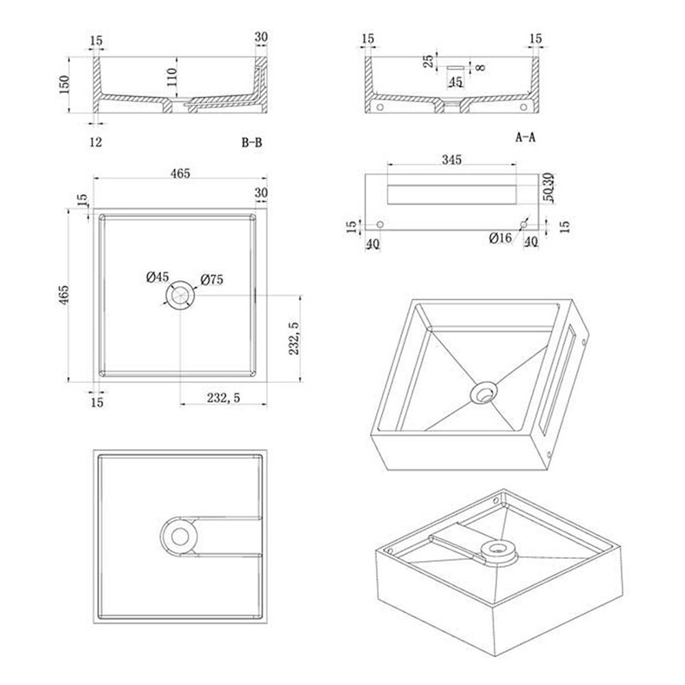 • External Dimensions: 150mm height x 465mm width x 465mm depth