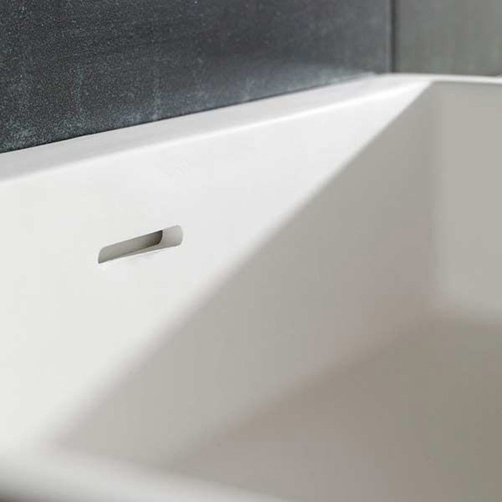 You can pair it with a countertop or wall-mounted tap and customise your space to suit your style preferences. The warm-to-touch Pure White matt finish adds a contemporary element, ensuring the solid surface and material provide a soft, inviting feel. The basin's slim walls, sharp angles and clean lines work in tandem to make it an ideal choice for enhancing the look and interior style of even the most upscale bathrooms.