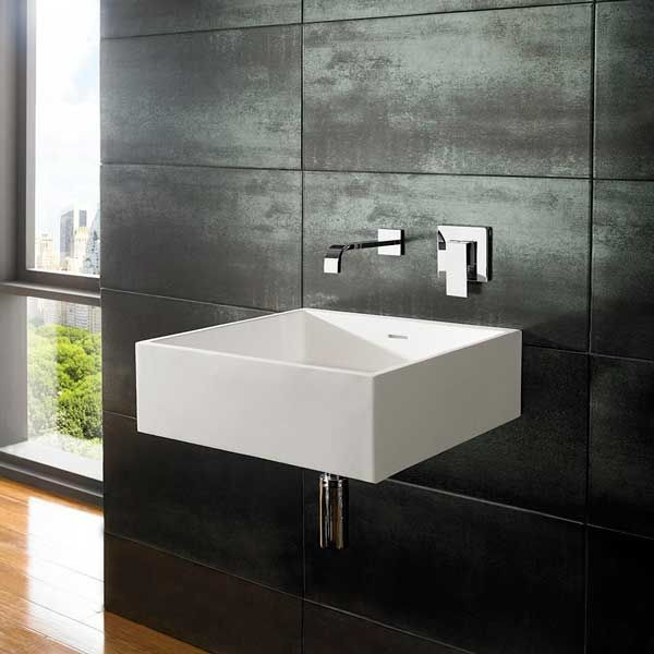 • Timeless square design with slim walls, sharp angles and no tap hole