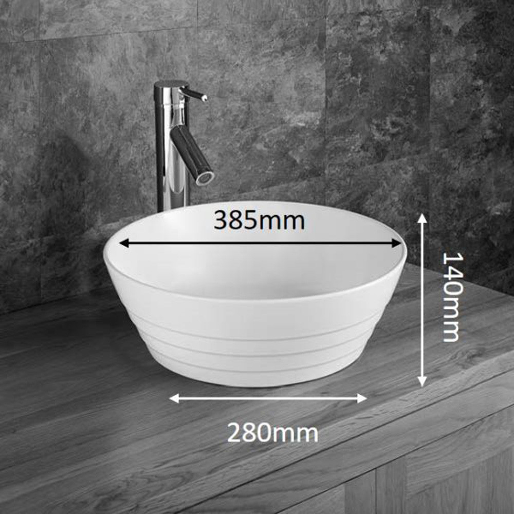 Features & Benefits: Aspra 385mm White Ceramic Round Ridged Countertop Basin
