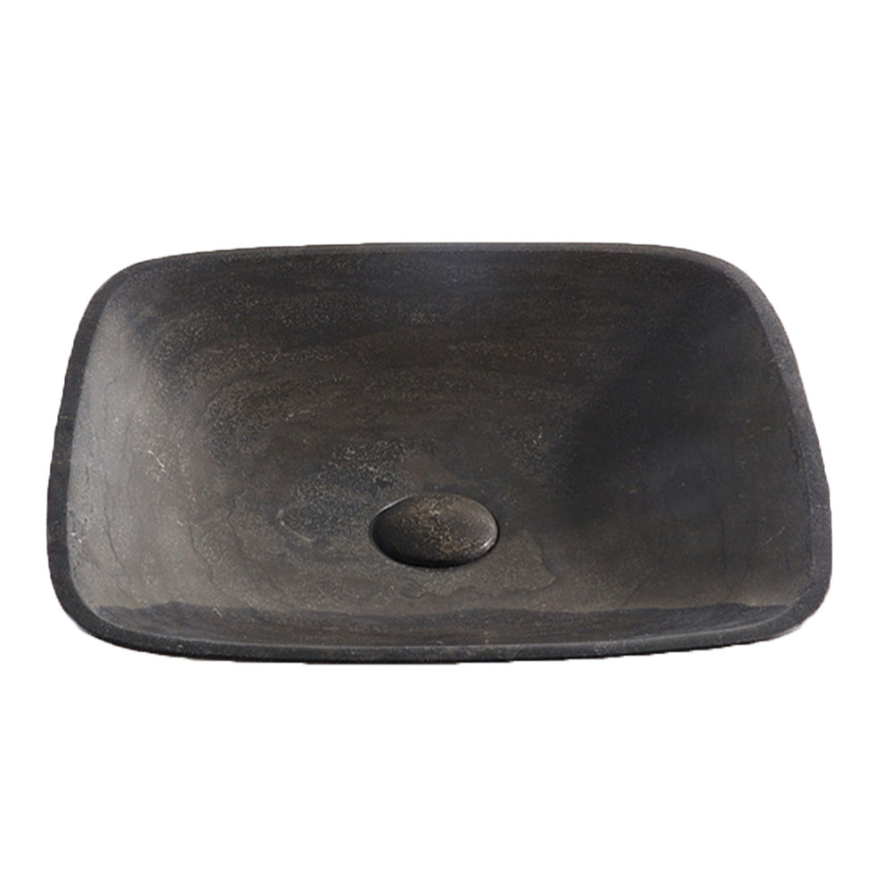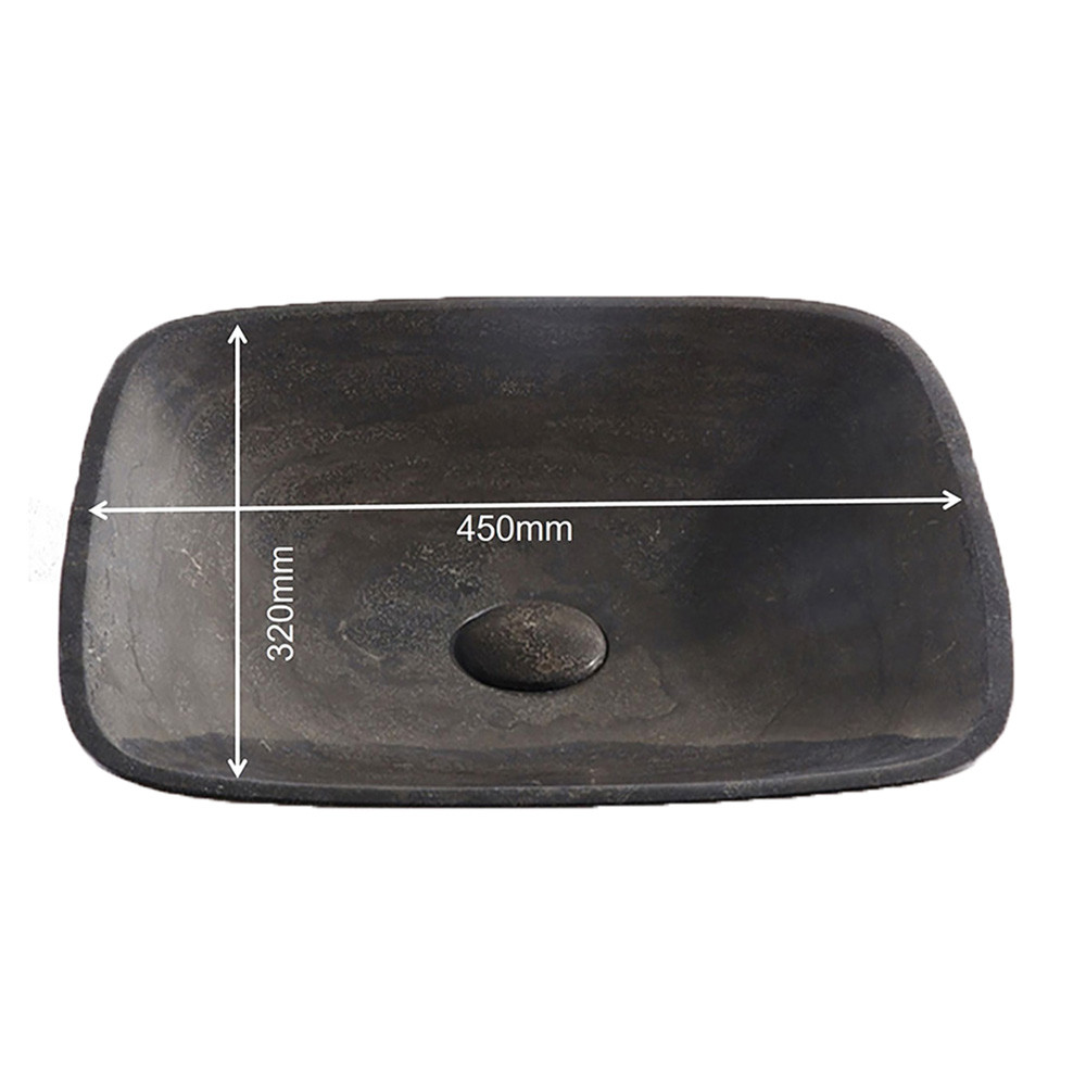 DISCON-Atessa 450mm x 320mm Black Limestone Curved Rectangular Basin