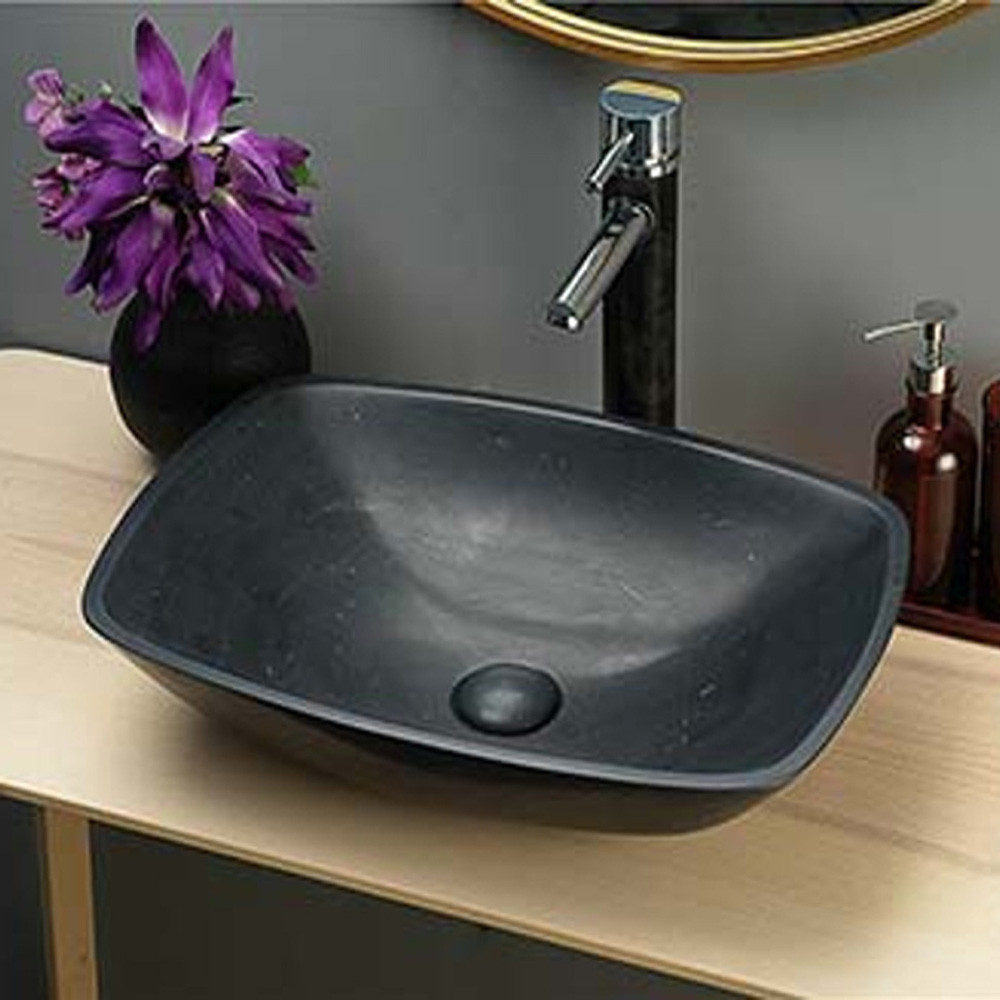 Features & Benefits: DISCON-Atessa 450mm x 320mm Black Limestone Curved Rectangular Basin
