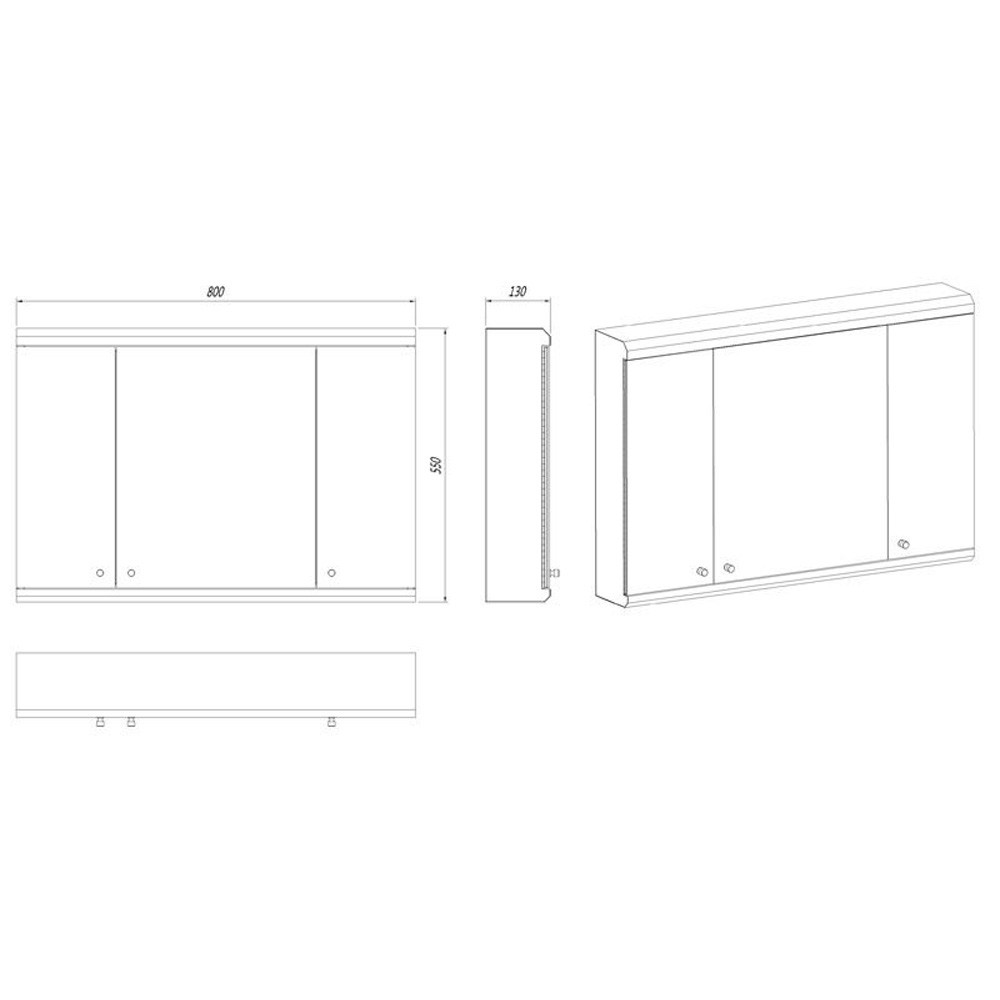 Features & Benefits: Biscay 800mm x 550mm Large Wide Three Door Bathroom Mirror Cabinet
