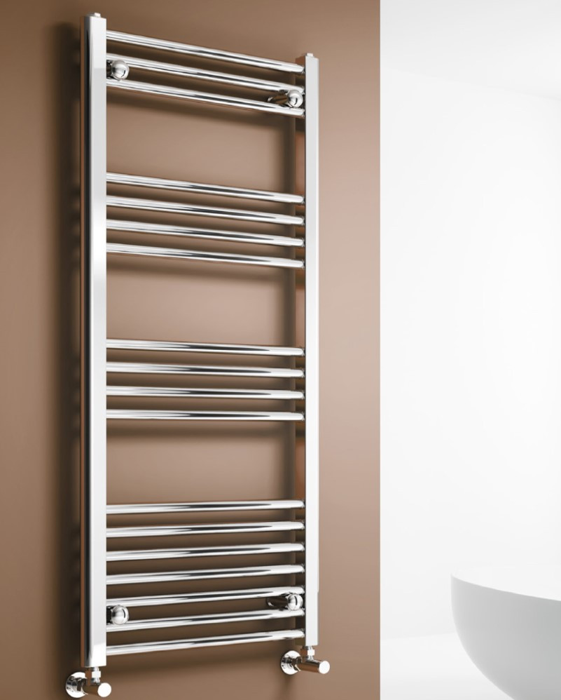 • A vertically orientated heated towel rail with contemporary chrome finish