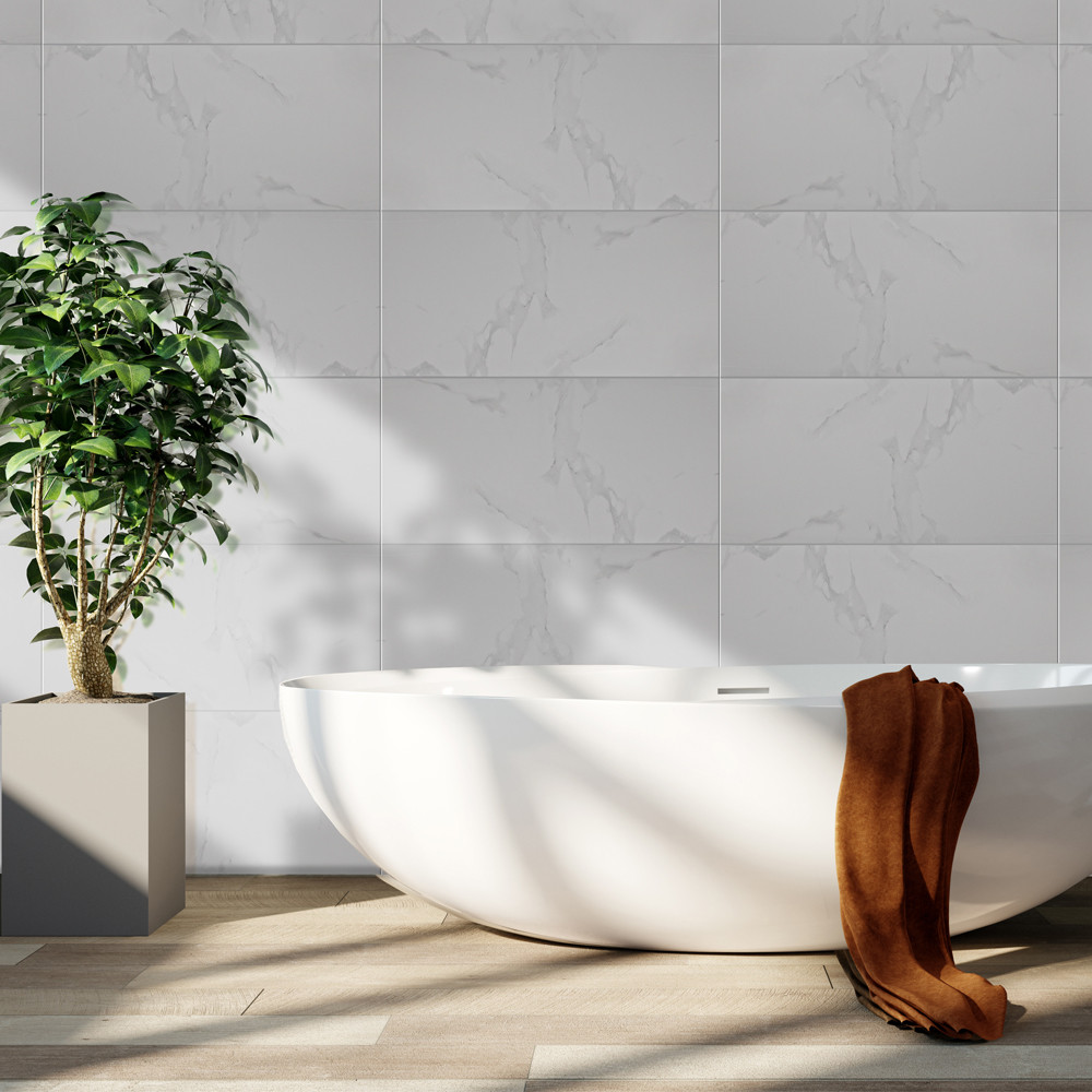 Features & Benefits: Cascais Marble Effect Polished Rectified Porcelain Wall & Floor Tile - 600mm x 300mm