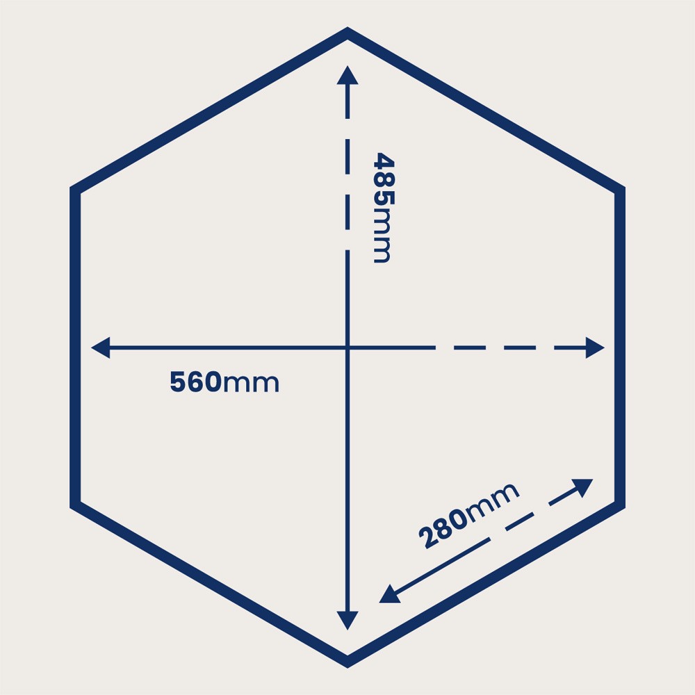 • These hexagon tiles each have a precise dimension of 485mm x 560mm and offer 5 tiles per m².