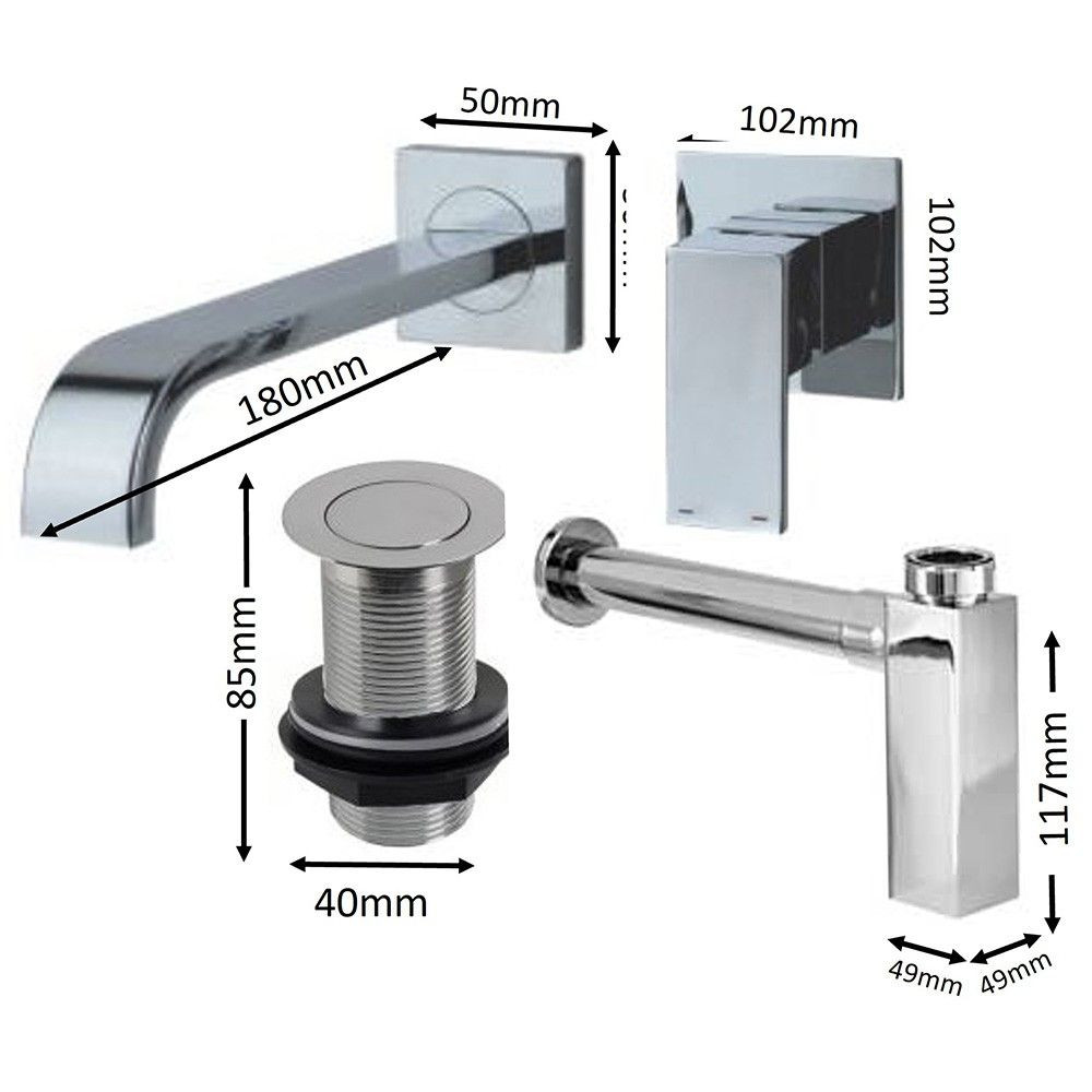 Two Piece Square Quadrato Chrome Tap with Unslotted Waste & Bottle Trap
