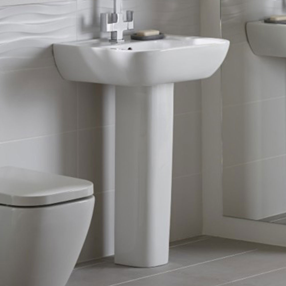 This small full pedestal from Essential's Fuchsia range is perfect for a small bathroom. With a classic, minimalist outlook and soft-edged square design, it will fit nicely with any decor. It's made from Vitreous China, which makes it extra tough and highly durable. This elega... Read More
