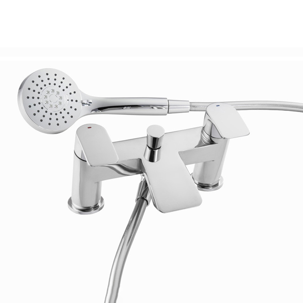 Essential brings you the mixer tap and shower set with a shiny chrome finish for a beautiful, elegant style. Complete with a shower head and handle, this set with curved handles offers a smooth appearance for any bathroom design.