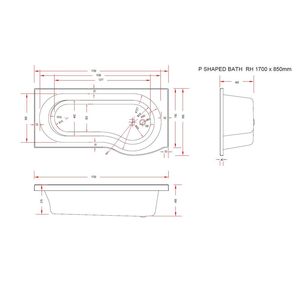 Features & Benefits: Essential Sigma White P-Shaped Right Hand Bath - 1700mm x 850mm