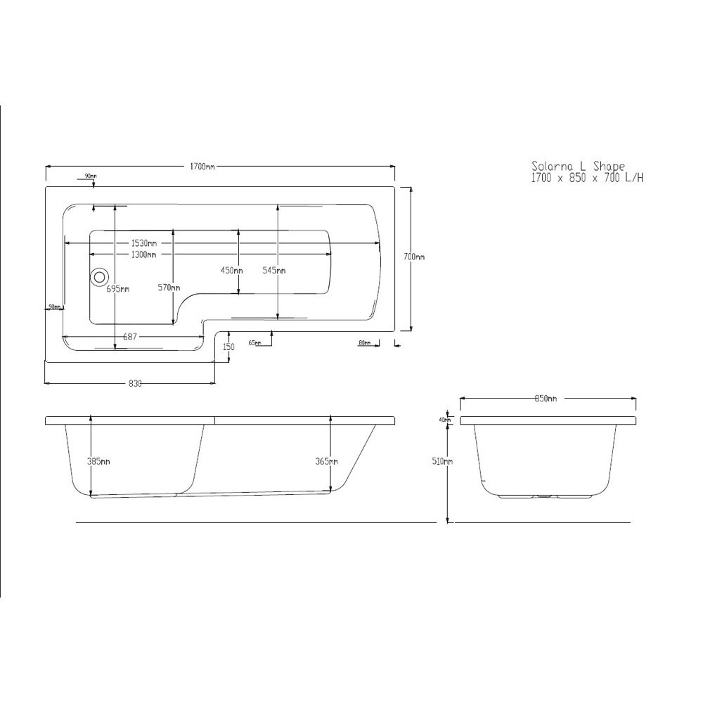 Introducing the Essential Tau Geode White L-Shaped Left Hand Bath combines strength, style, and functionality. Made from reinforced sanitaryware grade pure acrylic, this bath is highly durable and resistant to everyday wear and tear. Its L-shape maximises bathroom space, while the left-hand orientation ensures a comfortable bathing experience. The 1700mm x 850mm dimensions provide ample room for relaxation without compromising on space.
