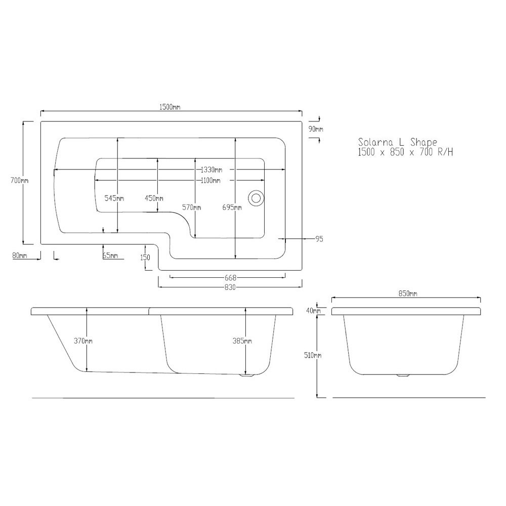 Features & Benefits: Essential Tau White L-Shaped Right Hand Bath - 1500mm x 850mm