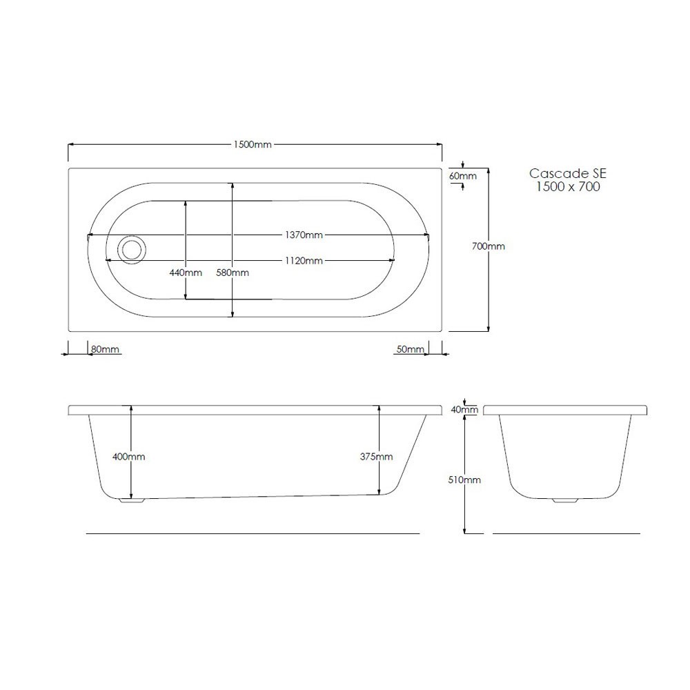 Essential Xi Geode White Single Ended Bath - 1500mm x 700mm