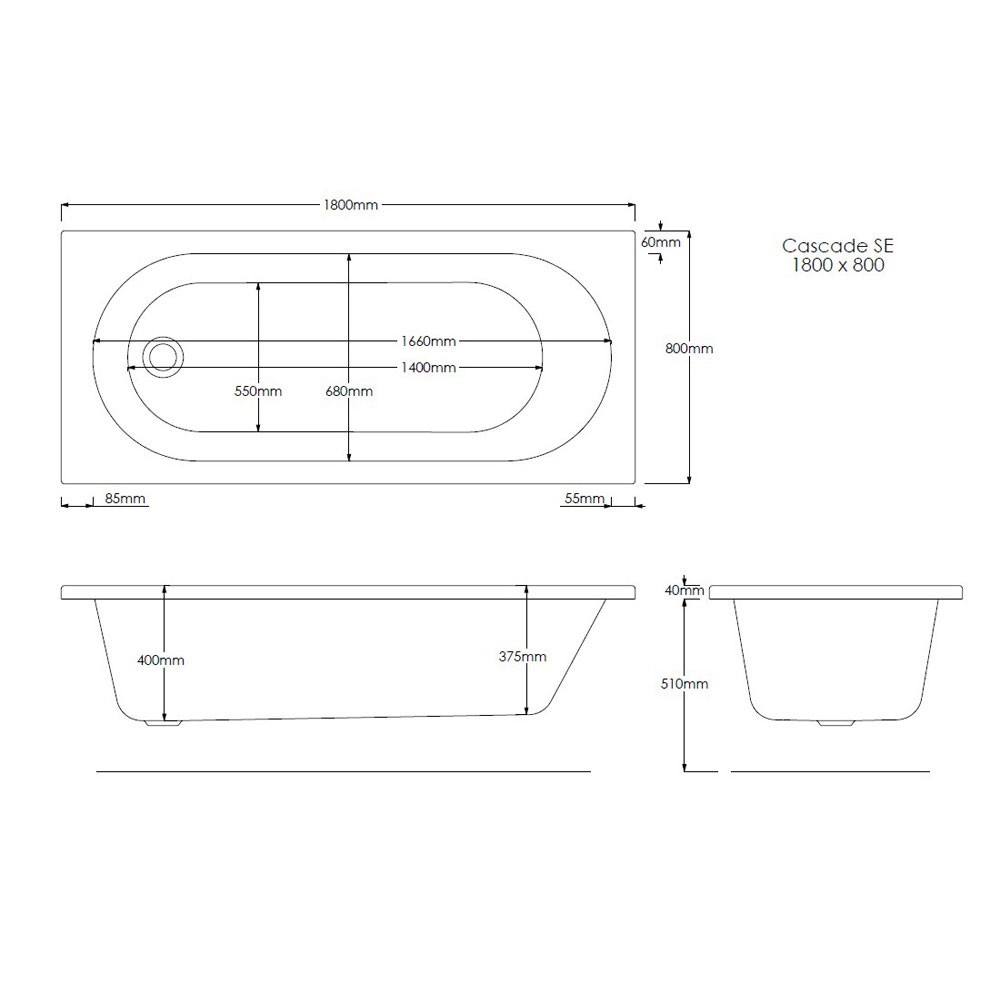 Features & Benefits: Essential Xi Geode White Single Ended Bath - 1800mm x 800mm
