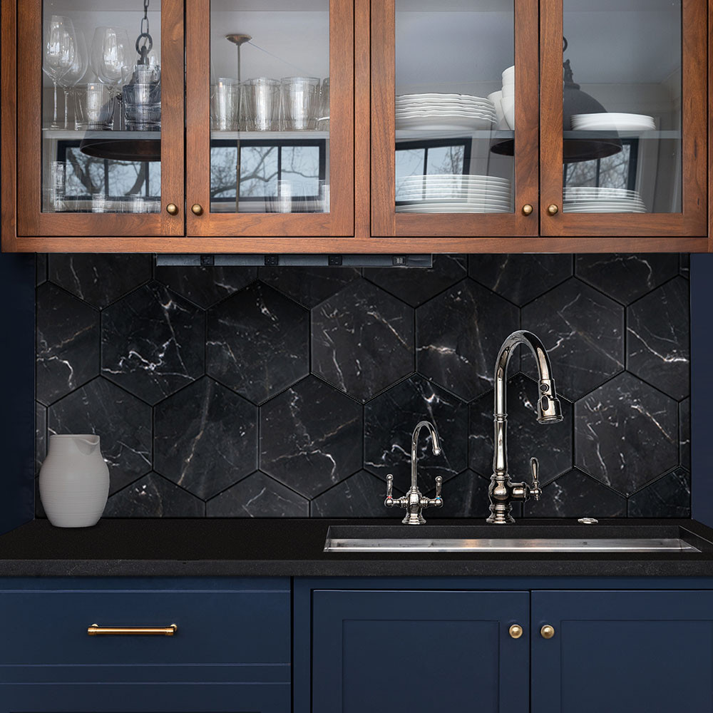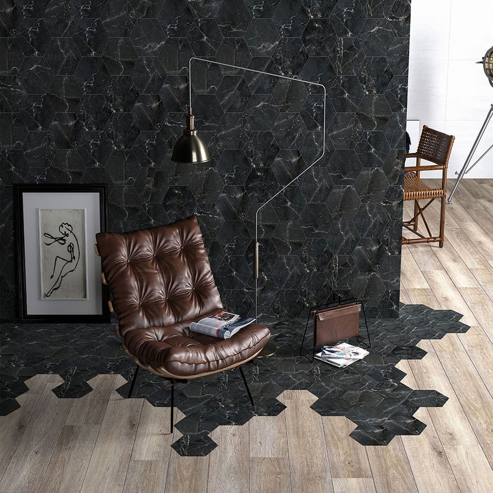 Features & Benefits: Favo Black Marble Effect Hexagon Porcelain Wall & Floor Tile - 201mm x 201mm