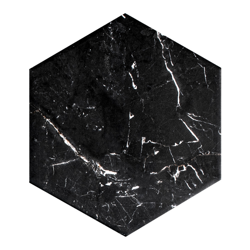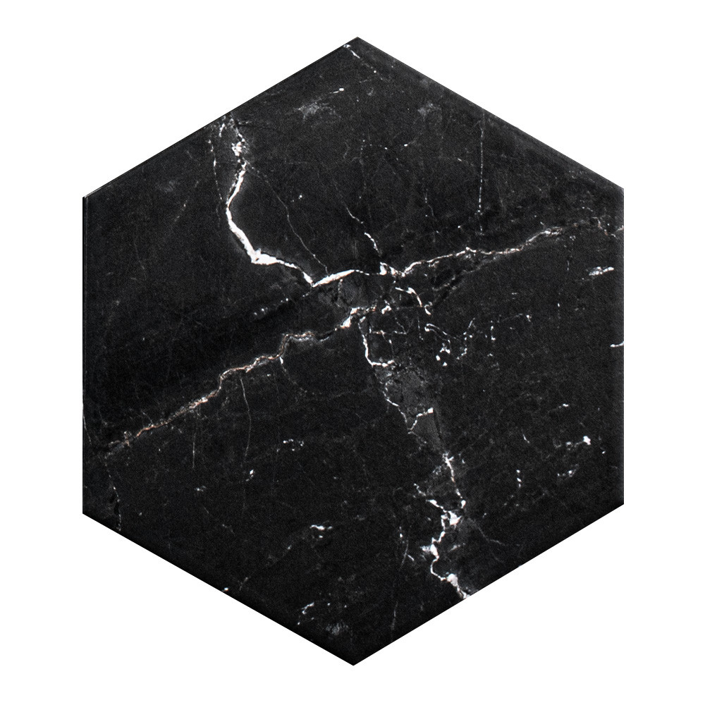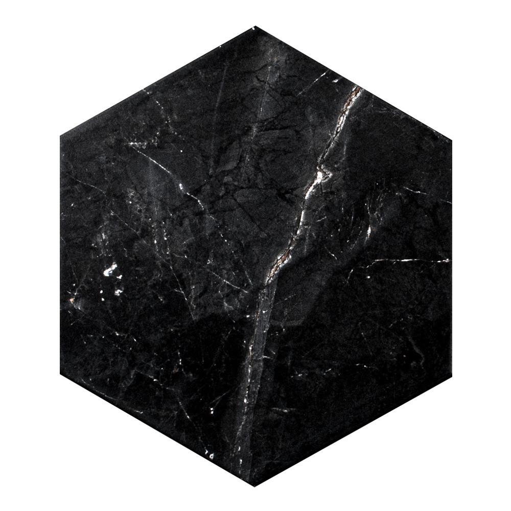 Favo Black Marble Effect Hexagon Porcelain Wall & Floor Tile - 201mm x 201mm