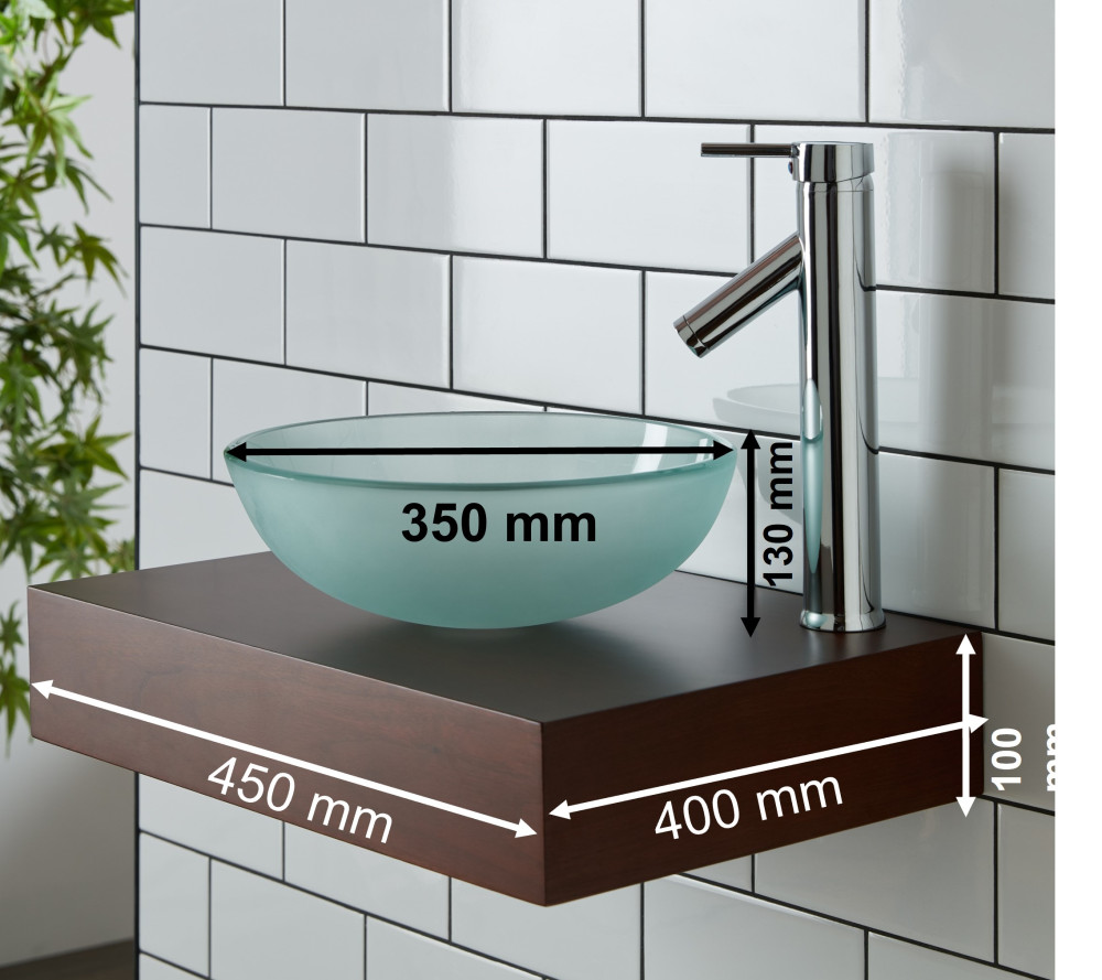The round, surface-mounted bowl-shaped Ferrara basin in frosted glass is a fantastic look for any bathroom and offers more than enough space to hand wash and shave whilst also being space-saving. It's perfectly paired with a high-quality good-looking ½ turn mono block mixer tap. Featuring an internal ceramic cartridge, the tap comes with a fixing kit and two braided tap/pipe connectors.