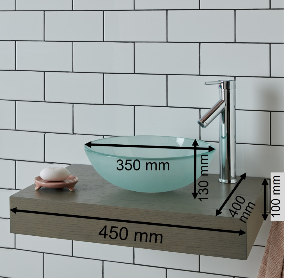 Make sure you finalise your bathroom or cloakroom with this luxury Ferrara Frosted Glass Round Basin & Small Silver Grey Shelf bathroom set, complete with fixings and accessories to ease the installation process.