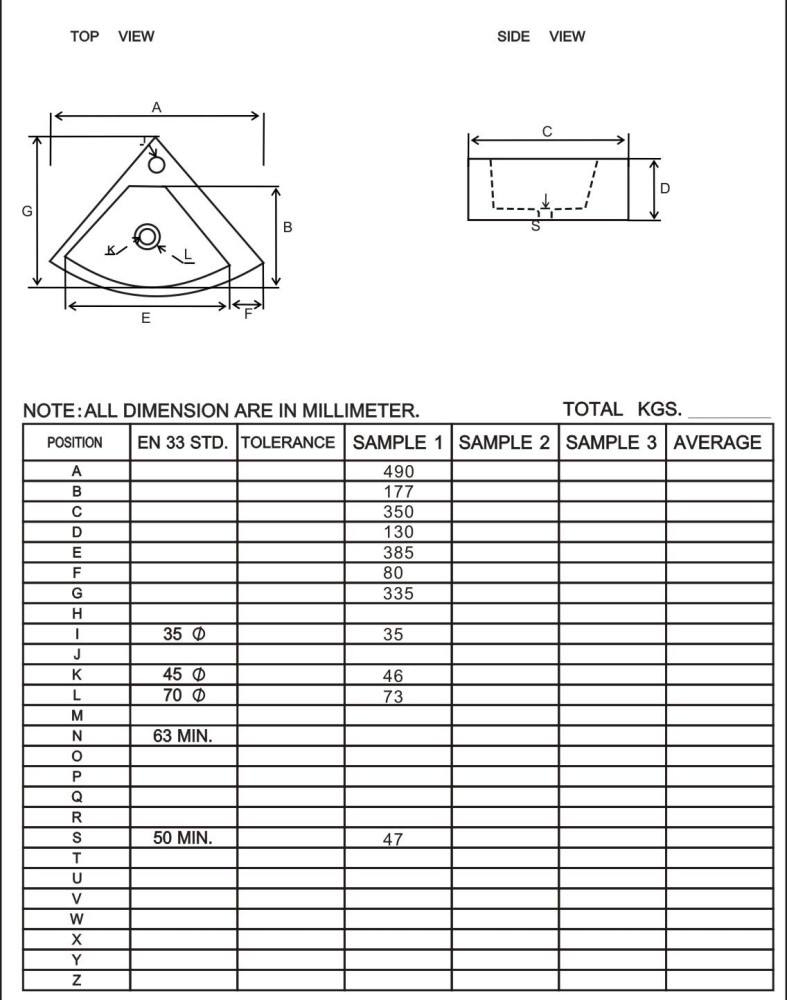 • External Dimensions: 130mm height x 500mm width x 340mm depth x 350mm side wall edge