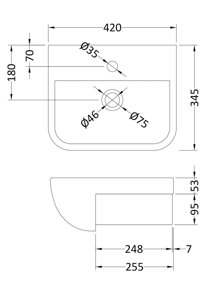 • Semi-recessed basin perfectly suited for countertops in smaller spaces