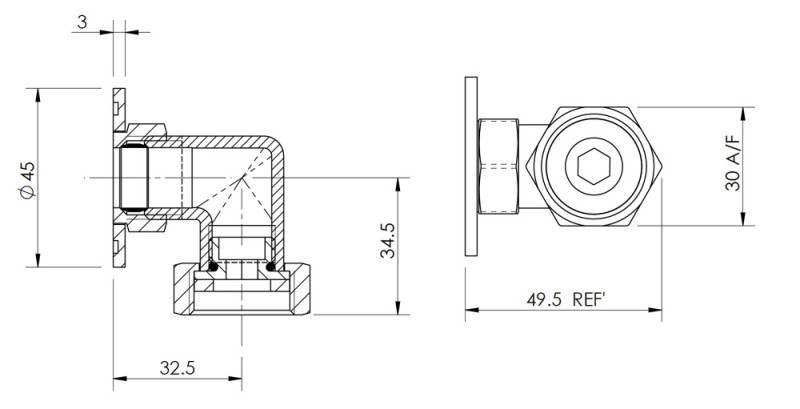 Sturdy shower elbow|Made from brass for extra strength and durability|Versatile 3/4" BSP tappings|Elegant polished chrome finish|47mm height x 30mm width x 40mm depth|1 bar minimum pressure
