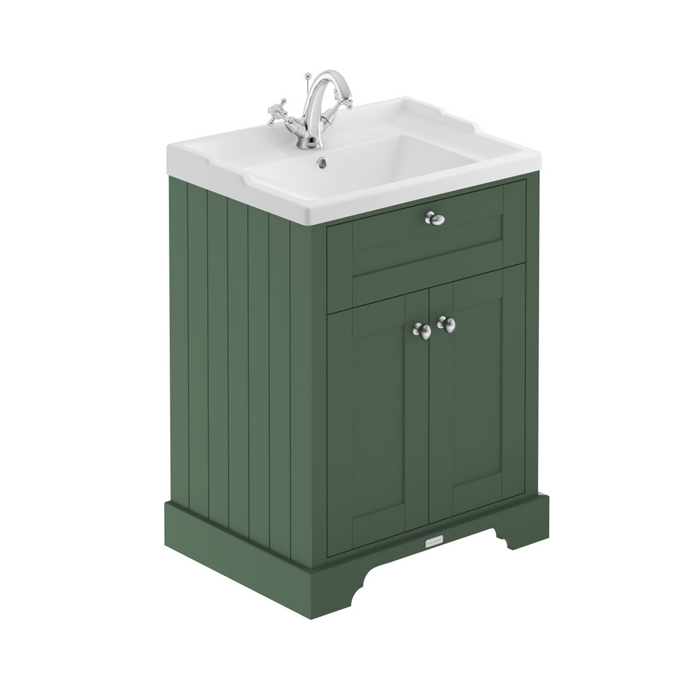 Features & Benefits: Hudson Reed Old London Hunter Green 800mm Free Standing Sand Single Drawer/2-Door Cabinet & 1 Tap Basin