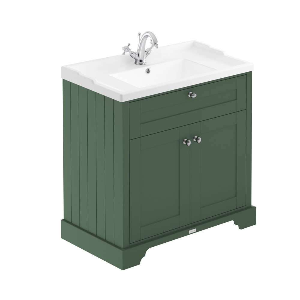 Hudson Reed Old London Hunter Green 800mm Free Standing Sand Single Drawer/2-Door Cabinet & 1 Tap Basin