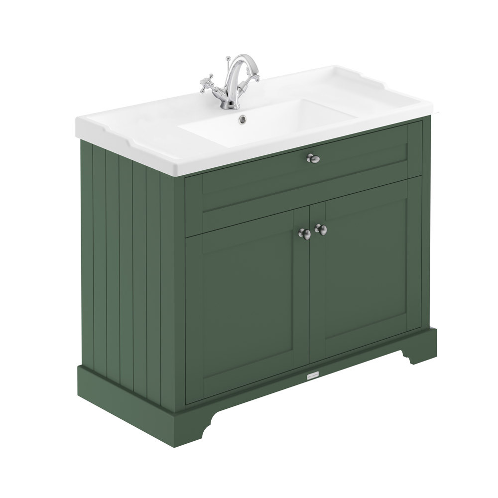 Hudson Reed Old London Hunter Green Sand Free Standing Single Drawer/2-Door Cabinet & 1 Tap Basin