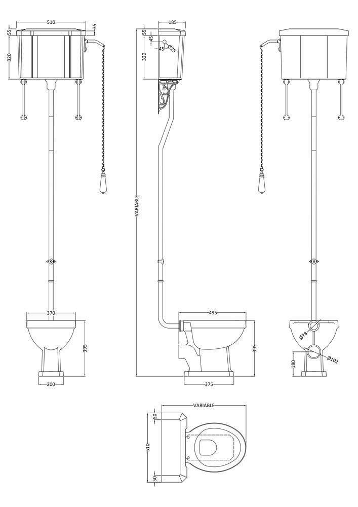 Features & Benefits: Hudson Reed Richmond 474mm White High Level Toilet Pan, Cistern & Flush Pipe Kit