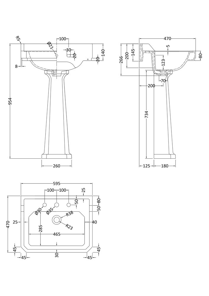 Features & Benefits: Hudson Reed Richmond 600mm White 3 Tap Basin & Comfort Height Pedestal