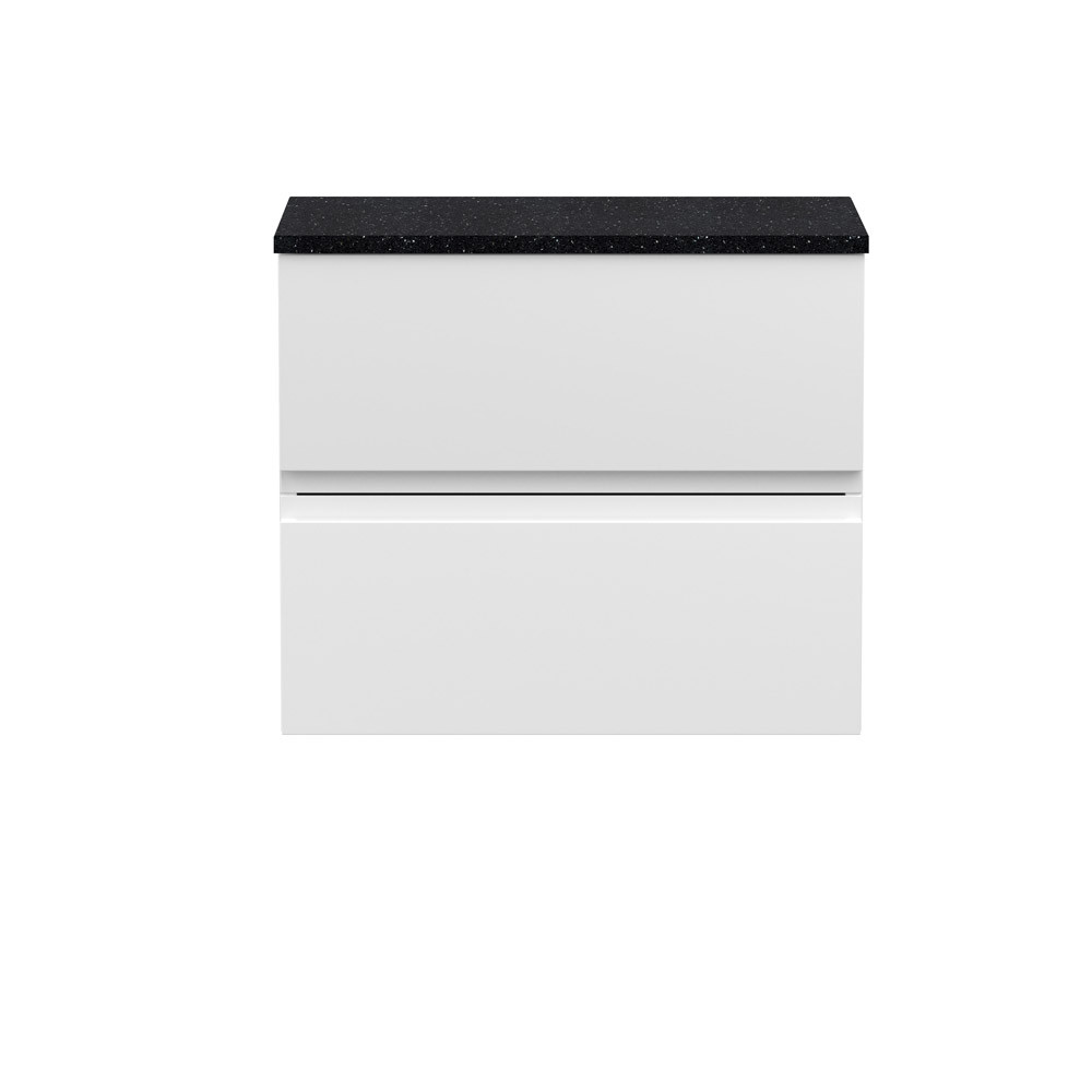 Hudson Reed Urban 2-Drawer Wall Hung Satin White Vanity Unit & Sparkling Black Worktop