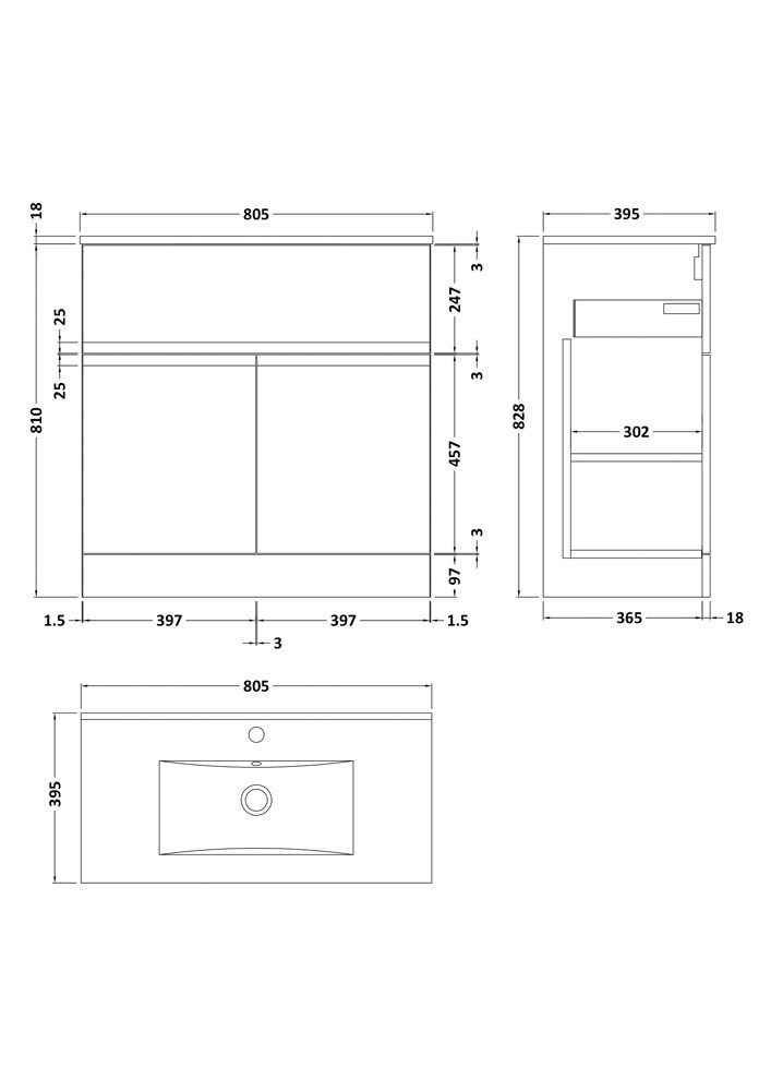 Features & Benefits: Hudson Reed Urban 800mm 2-Door/Drawer Free Standing Satin White Vanity Unit & Basin 2