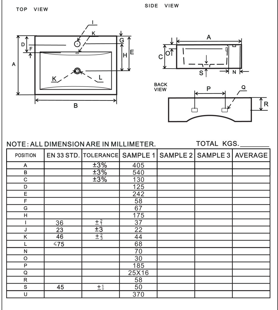 Measuring 550mm in width and 410mm in depth, this versatile basin seamlessly provides ample space for washing and shaving, making it a highly functional unit for a busy household. It combines functionality and elegance with sloped internal sides, an internal overflow for an extra layer of convenience, and a tap ledge for convenient storage of daily essentials.