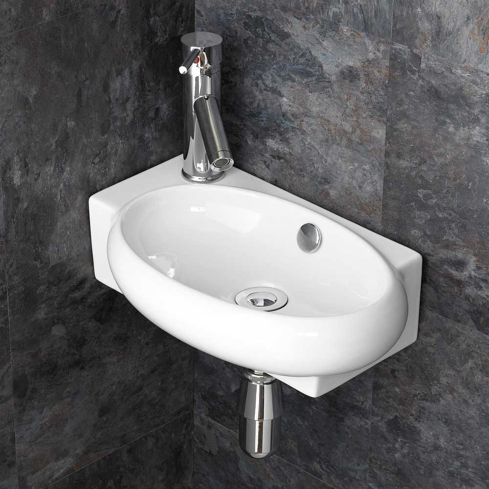 Features & Benefits: Lecce 430mm White Ceramic Narrow Left Hand Oval Corner Basin