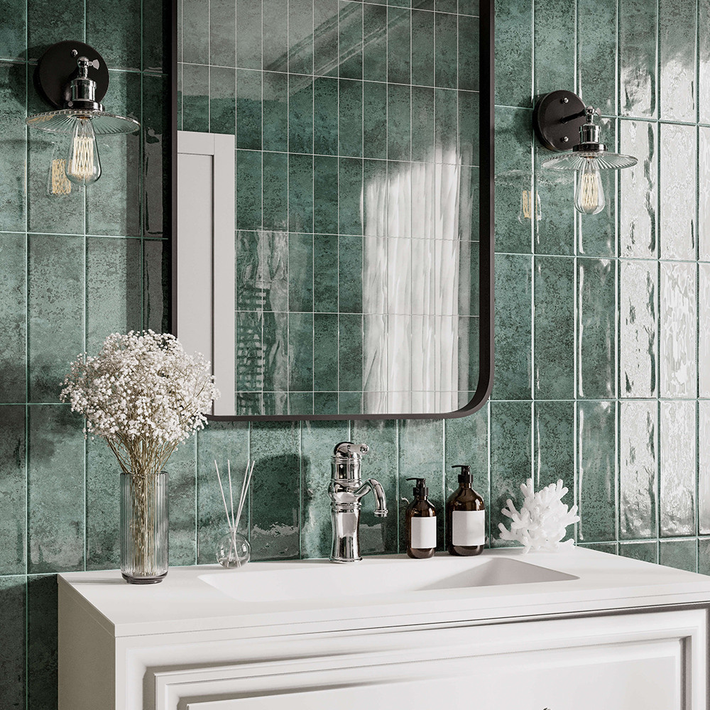 Features & Benefits: Luna Green Gloss Ceramic Wall Tile 100mm x 300mm | PALLET DEAL 70.6m² | £12.78m2 ex VAT