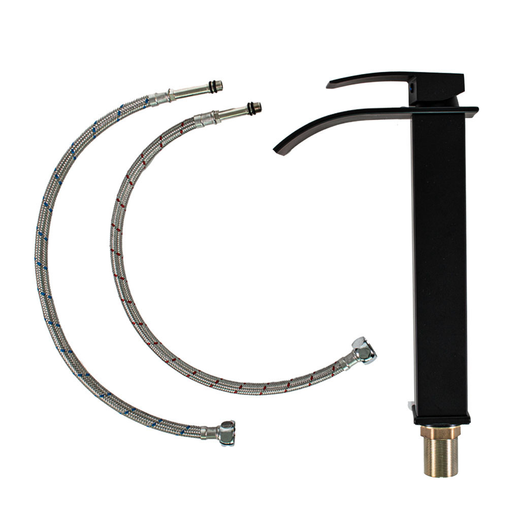Features & Benefits: Matt Black Square Tall Mixer Tap with Curved Waterfall Spout - 300mm