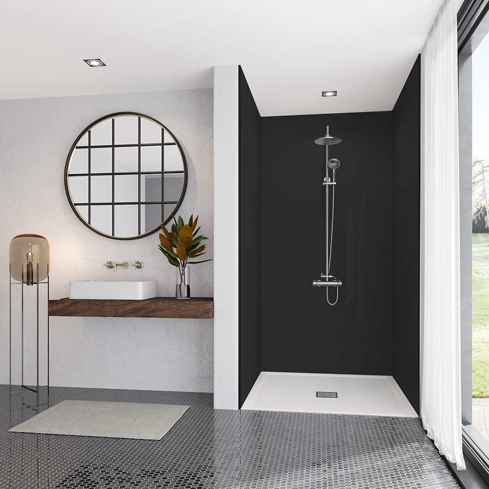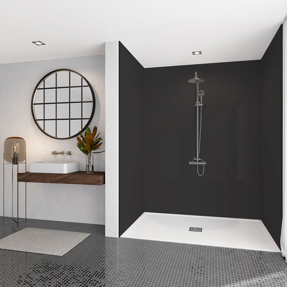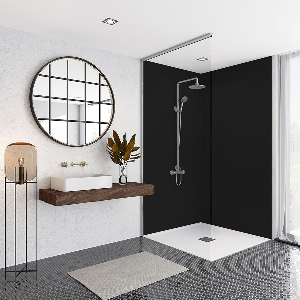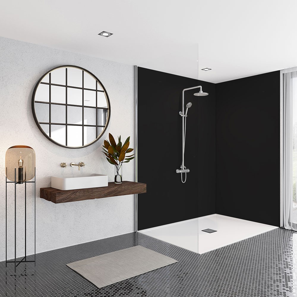 A black shower panel will create a bold statement within any shower, it will bring an ultra-modern, dark finish. The panel can be used to complement neutral bathrooms or to complement an already monochrome theme further. The acrylic panel has an antibacterial coating. This allows for easy cleaning whilst helping to prevent the build-up of mould and mildew. Compared to traditional tiles with grout, the panels are much cleaner and can look fresh for longer.