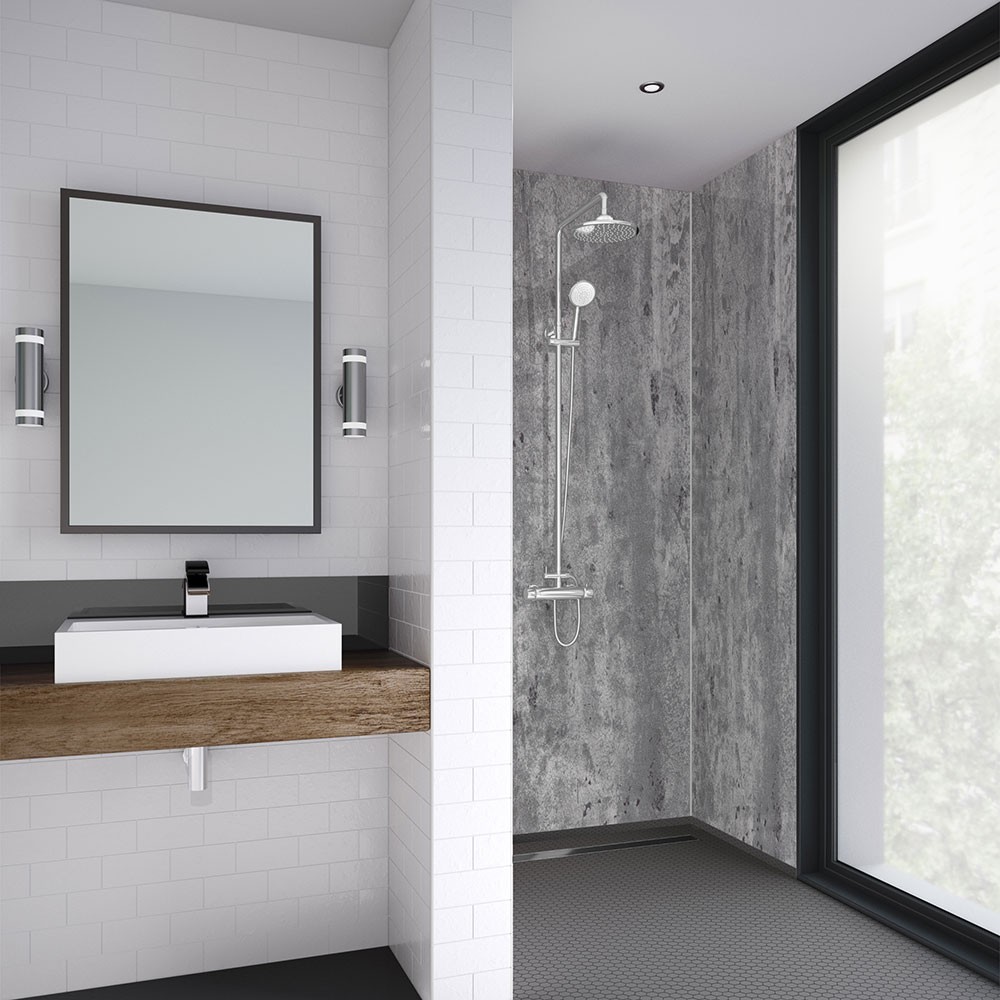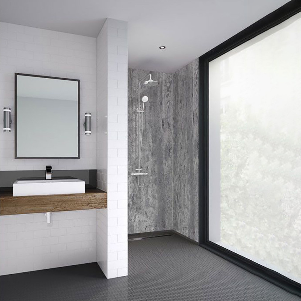 Platinum stone boasts an authentic concrete finish with deep grey tones and natural characteristics, giving this panel depth whilst creating a statement. This colour is ideal for any bathroom as it is highly versatile. The 15-year waterproof guarantee provides you with peace of mind, whilst the antibacterial coating reduces the build-up of mould & mildew. Additionally, Mermaid shower panels do not require grouting, saving you time when installing whilst being low maintenance.