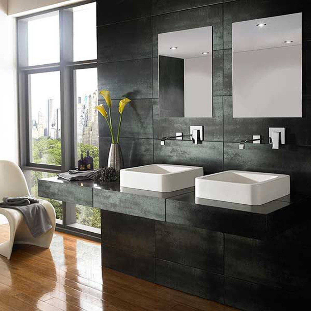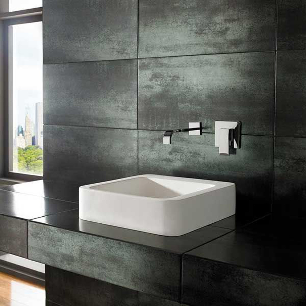 • Versatile design without tap hole fits with freestanding or wall-mounted taps