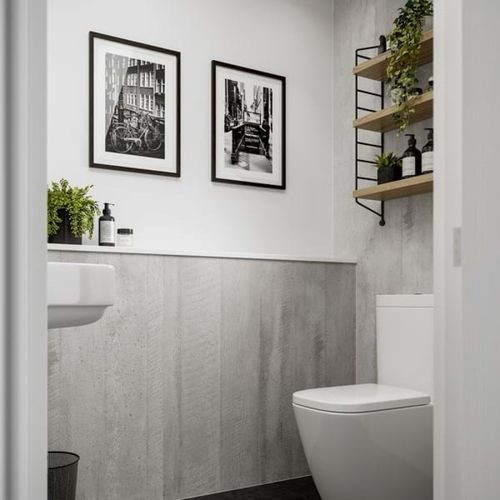• For a 100% watertight seal, apply silicone at all edges, whether using profiles, shower enclosures, or the Hydrolock system. Use offcuts behind sinks for a coordinated look, sealing all exposed edges with profiles and silicone.
