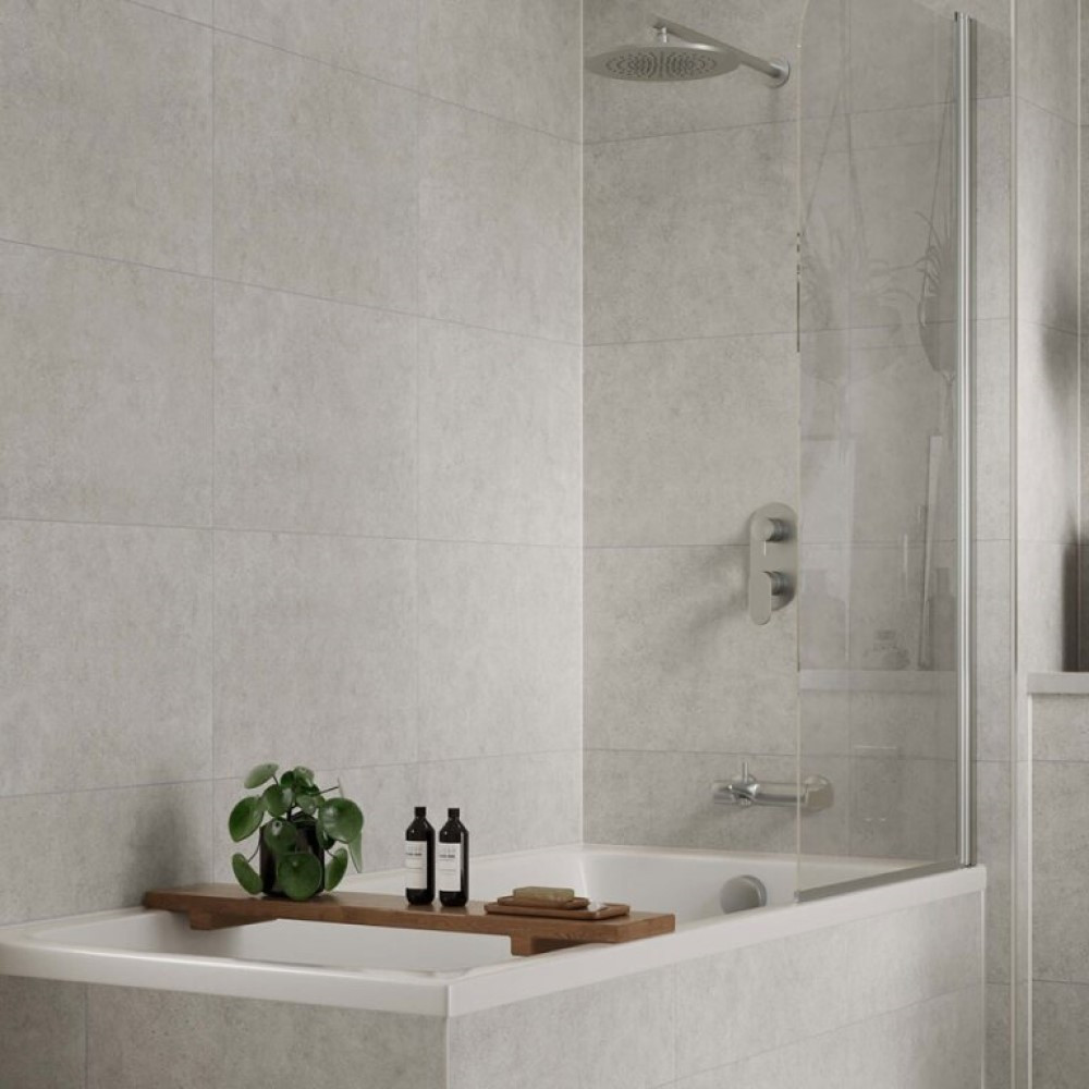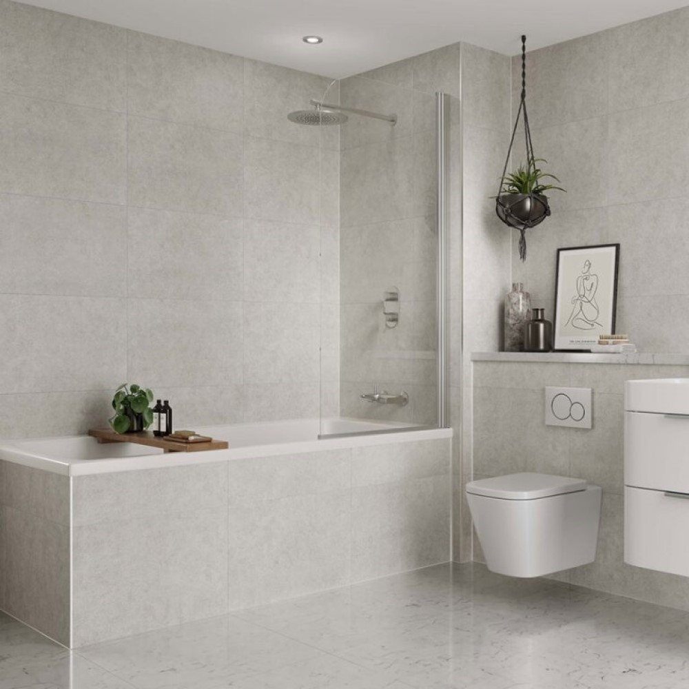 Turn your bathroom into a beautiful, spa-like oasis with this Multipanel Tile Effect White Mineral Tongue & Groove Hydrolock Shower Wall Panel. Fully waterproof, this pale grey White Mineral design is similar to the Grey Mineral design and combines the characteristics of different materials like concrete, granite and fine terrazzo. The decorative etched lines on the panels create the illusion of a tiled wall, making your bathroom look spacious and open.