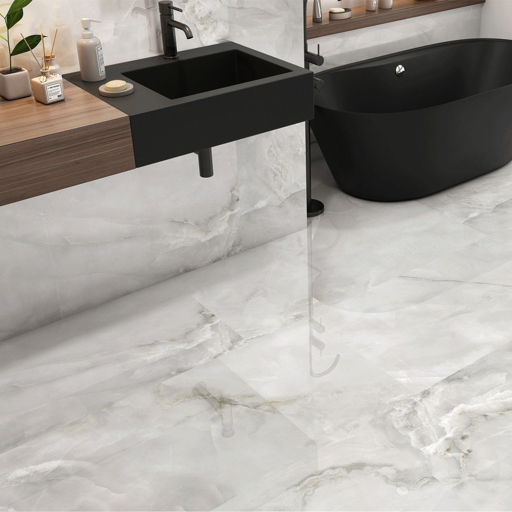 Features & Benefits: Novelda Grey Onyx Marble Effect Polished Porcelain Floor Tile - 1200mm x 600mm