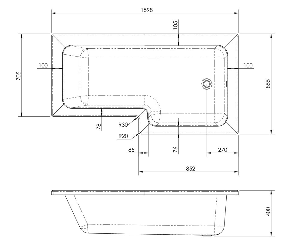 • Bathtub is undrilled and manufactured from sanitary grade acrylic