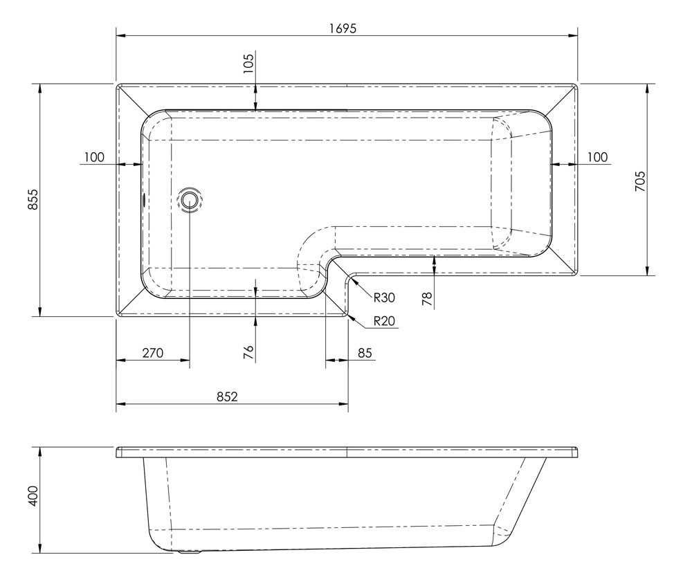 • Bathtub is undrilled and manufactured from sanitary grade acrylic