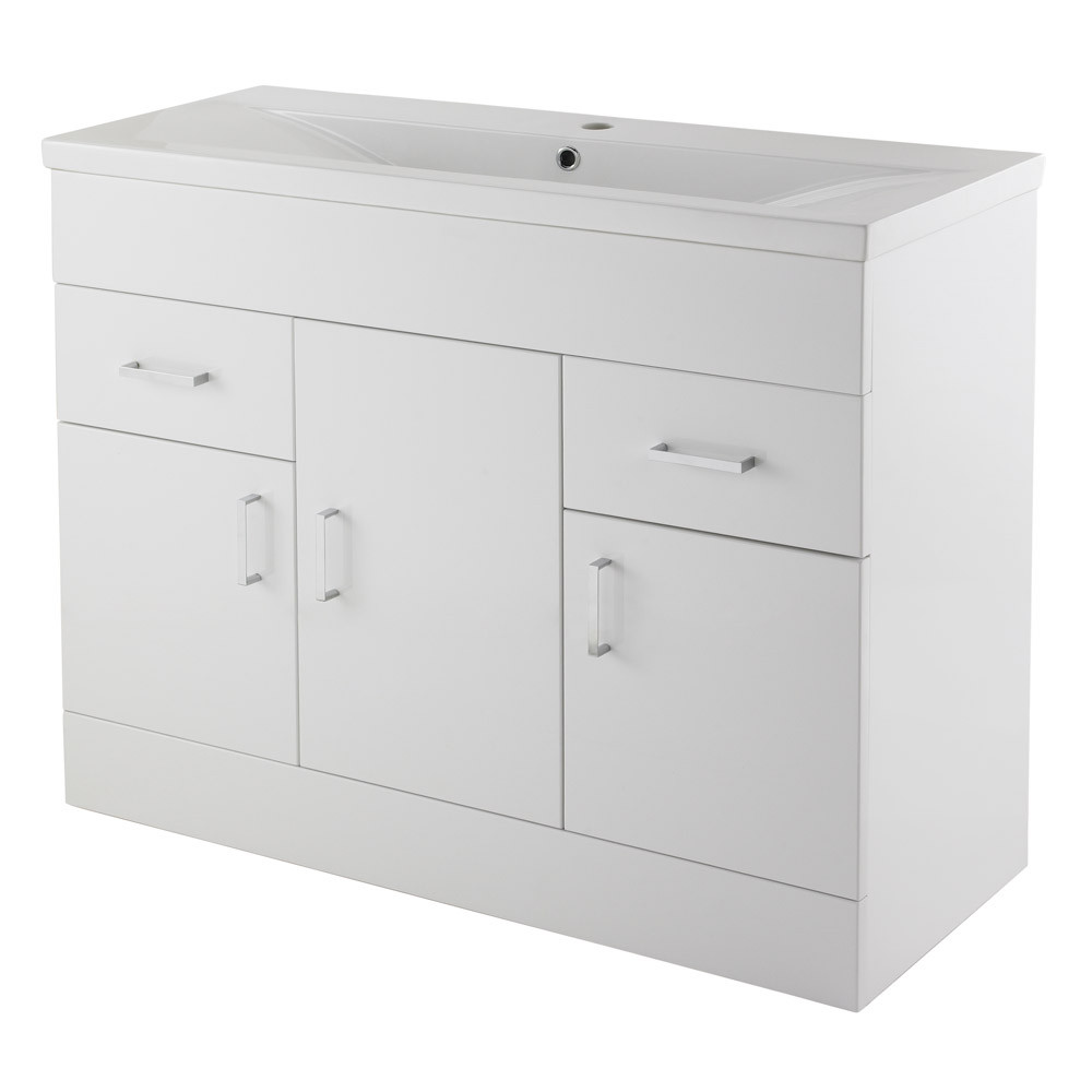 With a range of sizes and ceramic basin profiles to choose from, this minimalistic basin unit with a glossy white finish and contemporary matt aluminium handles provides practicality with a modern yet sleek appearance for your bathroom with copious amounts of storage space for all your toiletries and cleaning supplies.