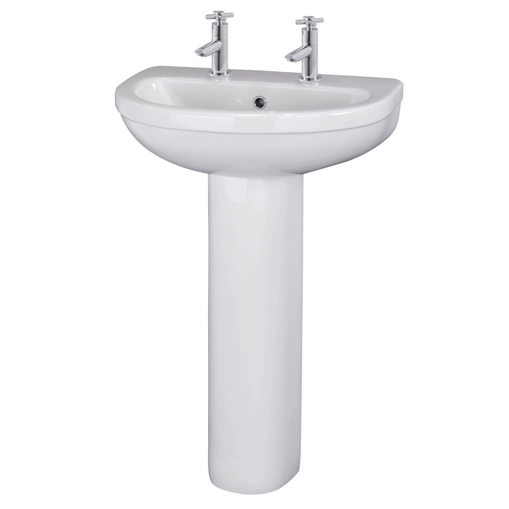 Nuie Ivo 550mm White 2 Tap Basin & Pedestal