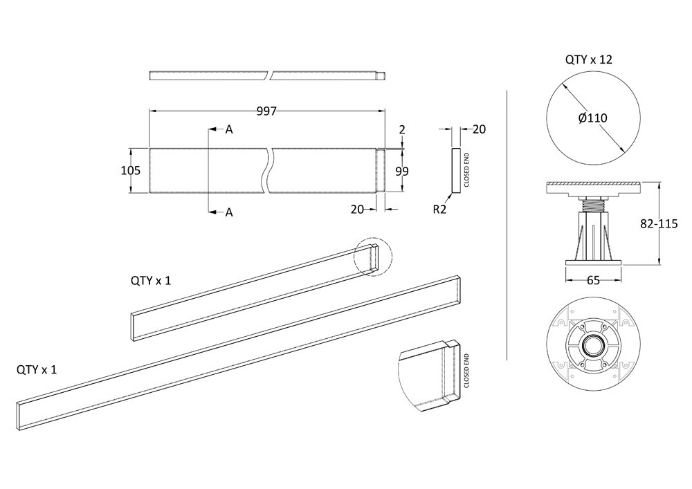• Leg Set for 1300mm-1800mm rectangular and walk-in shower trays