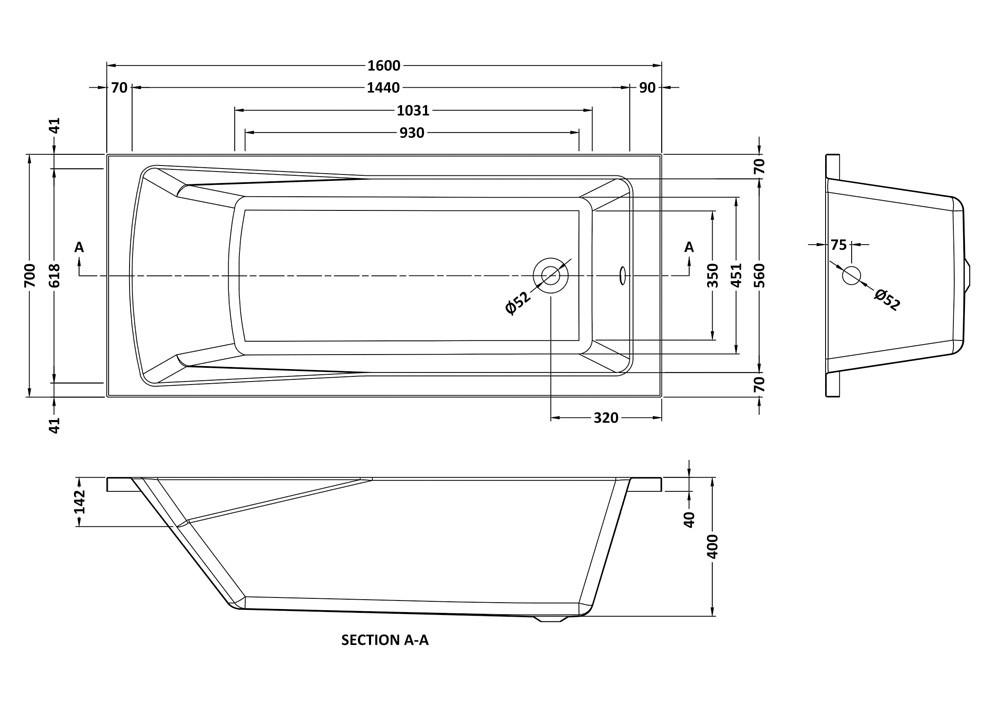 • 1600mm x 700mm dimensions