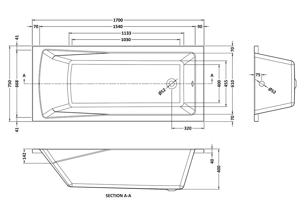 • 1700mm x 750mm dimensions